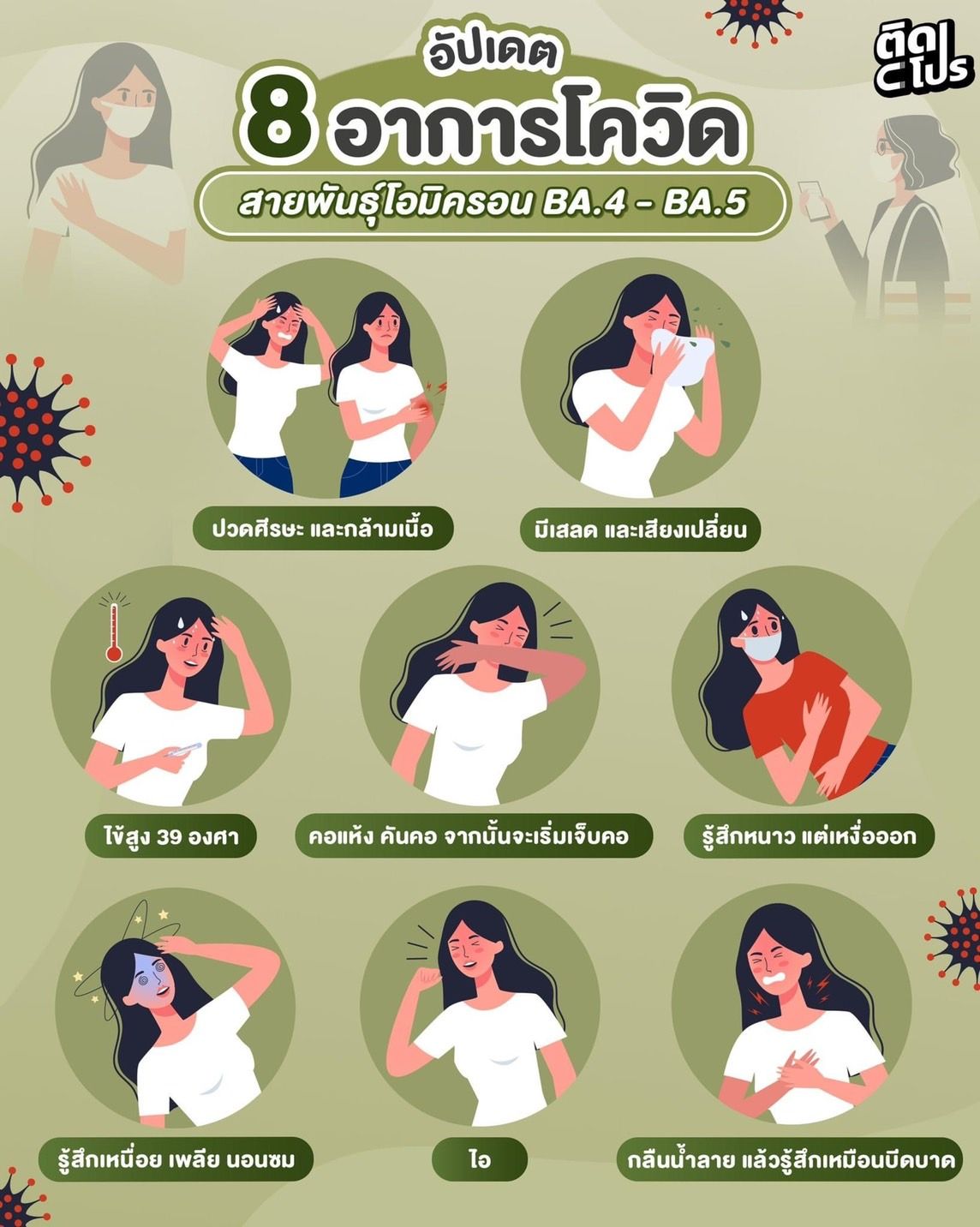 8 อาการโควิดสายพันธุ์โอมิครอน BA.4-BA.5